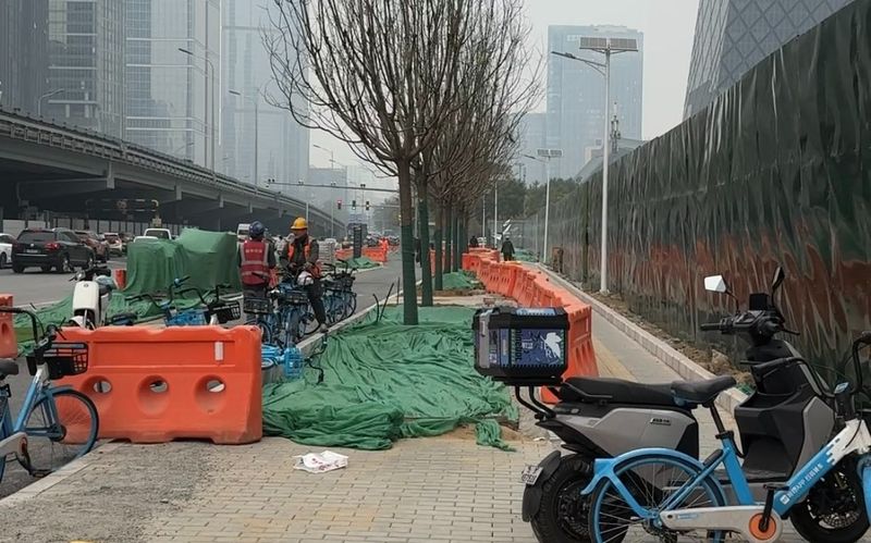 近日,有网友在YouShier@新京报(微信公众号:知道新闻)反映,由于道路施工,国贸大桥周边部分道路难以通行。行人无奈只能与共享单车、电动自行车挤在一起,甚至走在路上与机动车混在一起,存在安全隐患。 11月6日,记者走访现场发现,网友反映的问题依然存在。由于各种施工障碍和引导措施,导致进场道路狭窄、道路凹凸不平、急需抢修、沙石裸露。有网友形容“500米通勤路的难度就跟越野一样难”。据北京市发改委公开信息显示,这里正在建设“国贸桥片区公共空间改造提升项目”。该项目将于今年下半年开工,预计建设工期为4个月。记者联系了项目建设单位北京市朝阳区城管委员会,了解建设进展情况。工作人员回应称,该工程预计本月底完工,施工期间将持续监控施工进度,确保出行公众安全。人行道仅留一条约1米宽的通道供行人通行。新京报记者姜惠子拍到了人车混流的拥堵道路。 11月6日早高峰,工作人员从地铁国贸站F口出来,沿东三环中路辅路步行至光华路。不到50米,他就到达了网友举报的问题路段。该路段位于建国路与光华路之间,全长约500米。由于施工原因,大部分侧墙k个区域都被围起来,只留下一条约1米宽的通道供人们通过。早高峰时人流量大,通行速度很慢。很多人无奈,只能来到非机动车道,挤着共享单车、电动自行车。记者看到,一些人干脆走上了高速公路。人、车聚集在一起,存在重大安全隐患。 “是的,早高峰时人流量很大,很多人都冲在路上,轻松地与汽车竞争,而不注意后面的机动车和电动车。”在附近工作的李先生告诉记者。行人无奈,只能与电动自行车、共享单车挤在非机动车道上。新京报记者姜慧子 摄,路口情况较为复杂。由于人行道出口狭窄,行人和共享单车必须缓慢通行y,覆盖了旁边等公交车站的行人,导致路口拥堵。又是一个右转路口,过马路时,现场能听到电动自行车急速刹车的声音。此外,道路状况也增加了通行的难度。现场记者看到,道路腐烂,碎石裸露,停放的共享单车占据了部分道路,道路变得更加狭窄。路面不平整的地方,人们必须举着共享单车才能通行。国贸CBD是北京早晚高峰最繁忙的区域之一,周围聚集了大量写字楼。这段路是从地铁站到CBD的必经之路。除了影响交通之外,李先生还担心存在的安全隐患。路面不平整的地方,需要人们举着共享单车通行。新京报记者姜慧子太空探索蛇桥区整治提升工程正在建设中。这里实际上正在建造什么?记者查询发现,今年7月,北京市发改委印发了《关于国贸桥片区公共空间整理提升工程实施方案的批复》。批复显示,该项目建设单位为北京市朝阳区城管委员会。记者联系了朝阳区城管委,对方工作人员向记者证实,该项目的建设工作确实正在这里继续进行。根据批复,国贸桥片区核准的公共空间北起通惠河北路,北至沿光华路以南,总用地面积约13.8万平方米。网友反映的问题路段就在该区域内。北京市政局发改委此前表示,此次改造将实现三项改进,包括加快东西向人行横道、新建慢行廊道、增加绿地面积。修复后,国贸大桥南北两侧专用右匝道将被取消,右转弯将集中在辅路主线上,从而减少国贸大桥区域的交叉口面积。东西向过境距离将由原来的170米缩短至107米。行人过马路的交通信号灯较少,可以加快通行速度。同时,国贸大桥下将建设一条南北长1公里的慢行休闲旅游区,并对10栋建筑前的公共空间进行优化升级,以及4个地铁口的综合公共空间,凸显功能性。另外,在 th 后面新添加的空格取消右转专用坡道,将用于打造花园景观。桥下将种植鲜花、葡萄等。绿地面积将从21,000平方米增加到42,000平方米,约增加一倍。修复升级人行道、非机动车道、绿化带初具规模。新京报记者姜慧子 摄 朝阳区城管委:预计11月底竣工。施工现场工作人员告诉记者,改造后,CBD大楼前原有的部分公共空间将用于人行通道,同时铺设非机动车道,并在非机动车道与机动车道之间增设绿化带。目前,该路段已初具规模。记者看到,人行道、非机动车道、绿化带的位置都明确了。铺设非机动车道并绘制自行车标志名词绿化带仍在建设中。修建这条路需要多长时间?交通困难什么时候才能缓解?此前,北京市发改委表示,该项目计划于今年下半年开工,预计工期为四月。现场工作人员给出了比较明确的时间。他说,桥下空间的改善和重建“基本已完成”。该路段于上月底才开始施工,预计本月底完工。 11月6日,朝阳区城管委告诉记者,该段道路改造预计11月底完成。对于这段时间给人们带来的不便,他们将继续现场监督施工进度,确保人们出行安全。新京报记者姜慧子编编辑白爽 校对杨莉